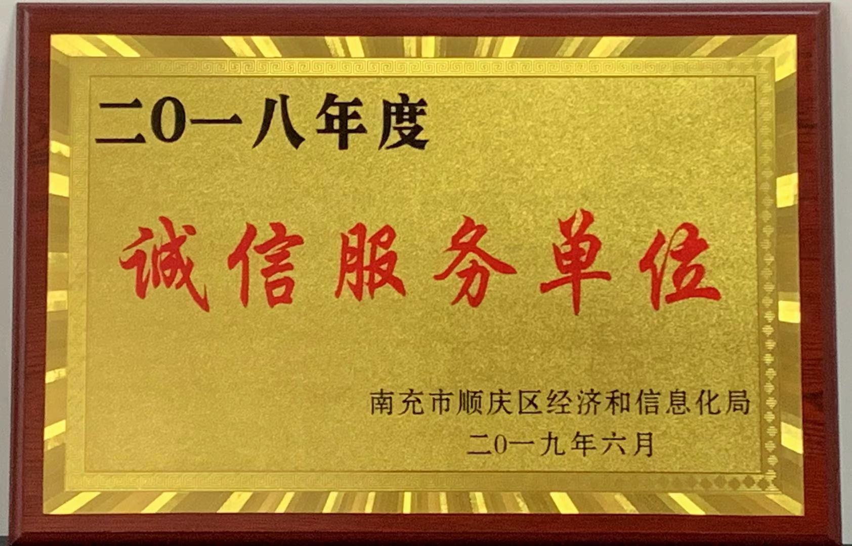 我公司獲得2018年度誠信服務(wù)單位